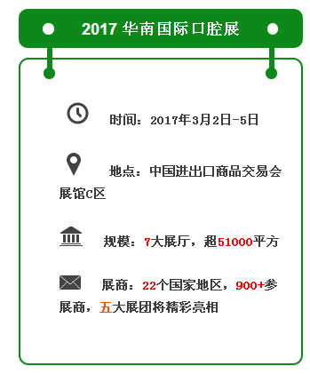 2017年3月2日-2017年3月5日,在中國進出口商品交易會展館,即將舉辦第二十二屆華南國際口腔展覽會,屆時的廣州口腔展展會設(shè)計裝修將展現(xiàn)人們對口腔的重視,為期4天的展會將迎來全球100多個國家的五萬多名口腔醫(yī)療專業(yè)人士,為各位小伙伴們做指導(dǎo)。